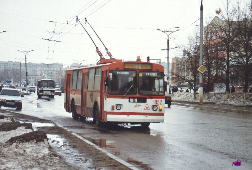 Троллейбус 1052 почти сохранил заводскую окраску учебных ЗИУ-9 1991 года. Указатели 54-го маршрута – оранжевые. Фото 1.4.2003. |