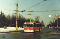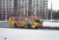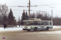 Троллейбус 1077 на 53-м маршруте, окраска также от Жени. Фото 1.4.2003. |