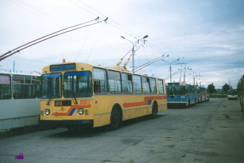 ЗИУ-9Г 1087 Женя покрасил точно как желтый Нордтролл. Указатели 55-го маршрута – синие. Фото Евгений Хвалынский, август 2001. |