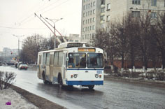 684 – один из 9 АКСМ-101 в Чебоксарах. Остальные 270 троллейбусов – все ЗИУ-9. Фото Евгений Хвалынский, 13.12.1998. |