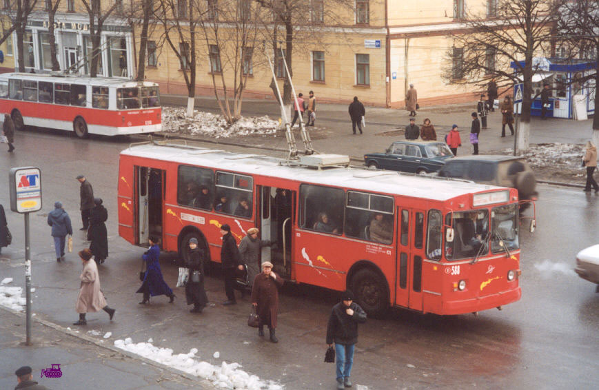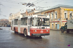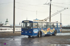 Троллейбус 1092 – ЗИУ-9В после капремонта в Вологде в 1998 г., заводской номер 4. Полоски от АКСМ нарисовал Женя; фото – июнь 2001. |