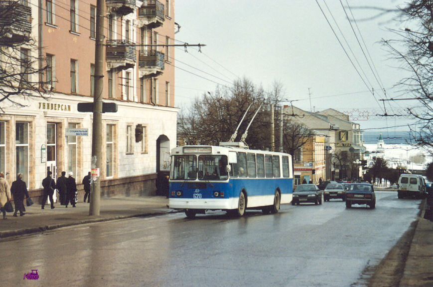 Улица Карла Маркса спускается к Волге (водохранилищу). Троллейбус 620 – один из немногих сине-белых. Фото 2.4.2003. |