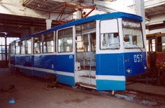 Вагон 057 – из первой партии КТМ-5 №№ 50-59 с 1976 г. – в свежей окраске после капремонта. Фото АО, 25.8.2001. |