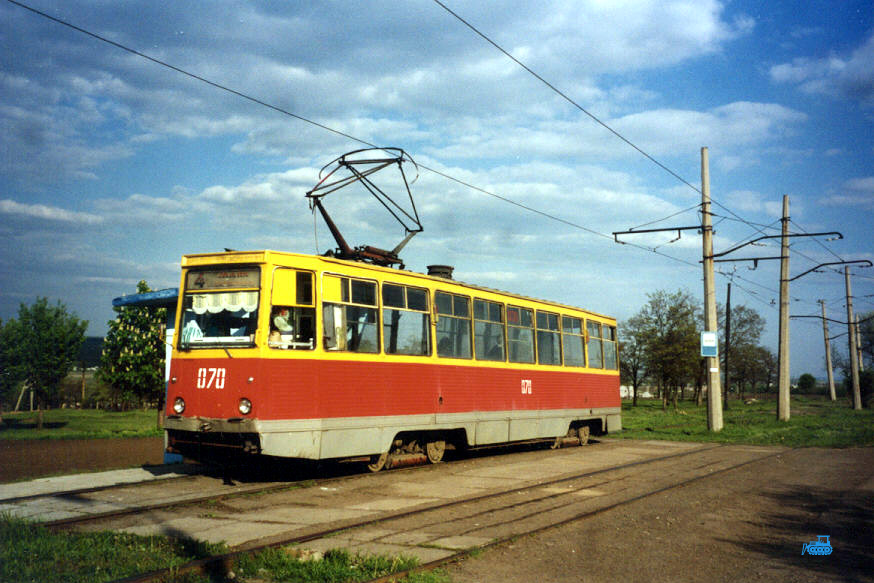 Вагон 070 на конечной остановке «Микрорайон Машиностроитель». Фото АО, 7.5.1999. |
