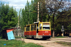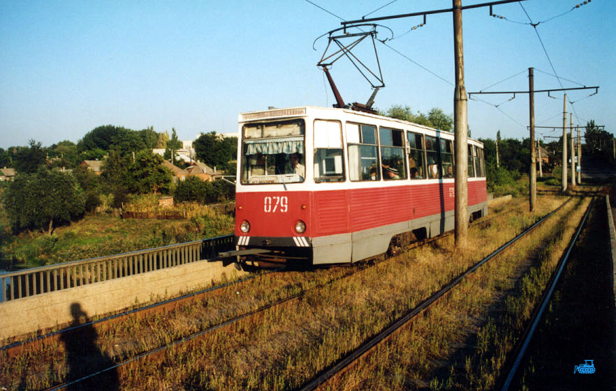 Вагон 079 – единственный в тот день на линии... Конечная 1-го маршрута «Горбольница». Фото: Михали Денщик, 2.5.2004. |