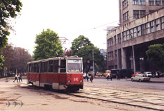 После 12-летнего перерыва в январе 1991 г. в Ленинское депо Харькова снова поступили вагоны КТМ-5 (теперь уже 71-605А). Они получили номера начиная с 880 назад, то есть 863-880. В феврале следовали вагоны 861 и 862. Фото: вагон 862 (зав. 706) на 11-м маршруте; АО, 2.10.1998. |
