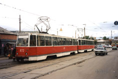 Вагон 875 (зав. 622) на 1-м маршруте на Красноармейской улице. Фото: АО, 14.6.2002. |