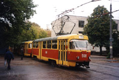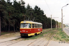 Вместе с новыми вагонами 1986 года 691-700 и 721+722 Салтовское депо снова получило старые Октябрьские вагоны (701-720) и Ленинские (723-726). Фото: состав 725+726, бывшие 903+908, зав. 169405+169407; Stefan Spengler, 28.4.1999. |