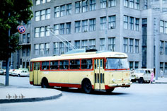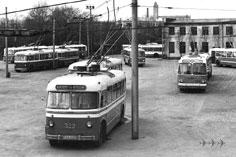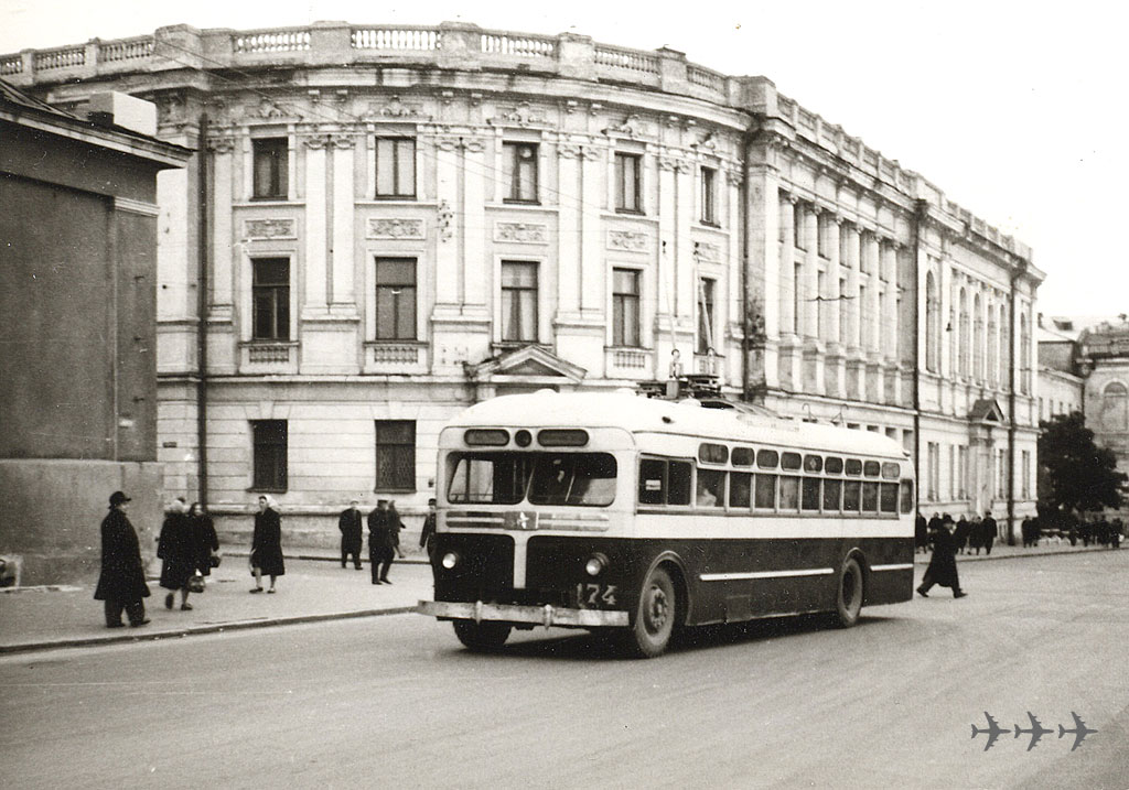 Троллейбусы МТБ-82 поступили до 1961 года; последние были списаны в 1971 г. Фото: МТБ-82 №174 на Университетской улице; Вольфганг Шрейнер, окт. 1959. |
