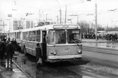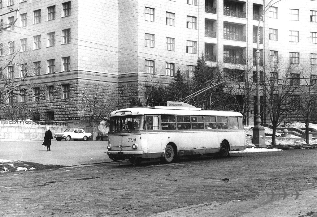 Троллейбус 79 – бывшая голова сцепки 79+80. Фото: площадь Свободы (тогда - пл. Дзержинского); АО, 2.4.1987. |