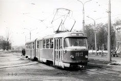 Вагон 1940 на конечной «Проспект Гагарина». В ходе капремонта вагон получил гладкие борта. Фото: АО, 2.4.1987. |