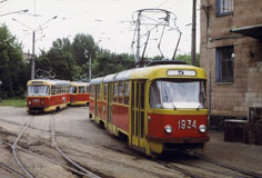 Вагоны 1934 и 1707 в Коминтерновском депо. Фото: Thomas Fischer, 19.5.1990. |