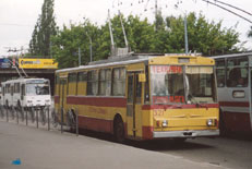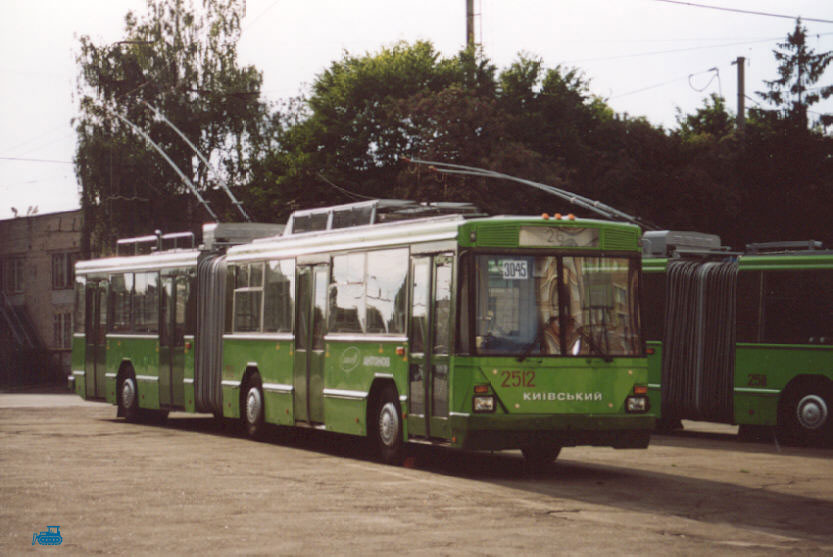Очередный новый «Киевский 1203» № 2512 только что прибыл в депо №2. На стекле бумажка с заводским номером 3045, то есть это 45-й 1203. Фото 3.6.2002. |