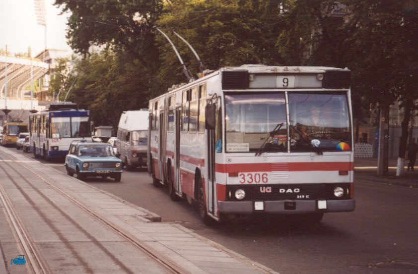 «Киевский 1203» № 1101 на конечной маршрута №1 у станции метро «Лыбедьская». Фото 19.6.2002. |
