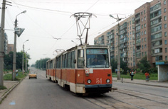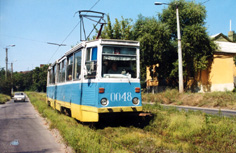 поступивший вместе с вагоном 58 в июне 1991. Фото: трамвайная станция, АО,