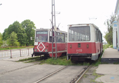 Вагоны Х и М на трамвайной станции у
