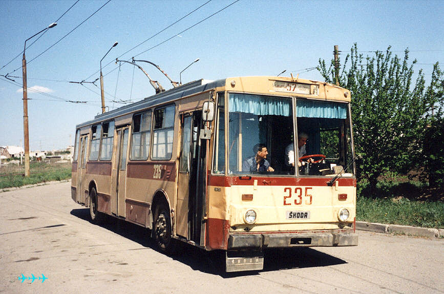 Троллейбус 235 на 57-м маршруте на конечной «Шахта Луганская». Фото: АО, 12.5.1997. |