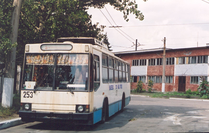 Троллейбус 253 с надписью «Макеевка – это наш город» в депо. Фото: Константин Климов, 13.8.2003. |