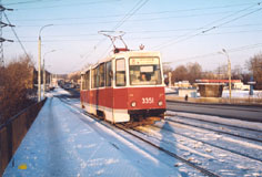 Кольцо вокруг кварталов двухэтажных домиков у вокзала. Вагон 1220 на 27-м маршруте. Фото: АО, 21.2.2004. |