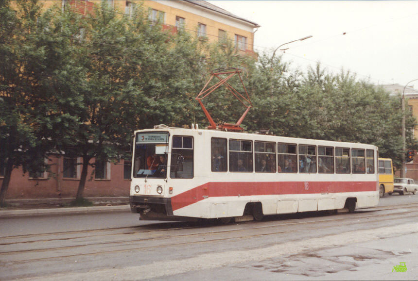 Один из двух КТМ-8 на 3-м маршруте. Фото Олег Чалков, лето 1994 г. Сейчас оба КТМ-8 (№№ 6 и 16) заброшены в депо. |