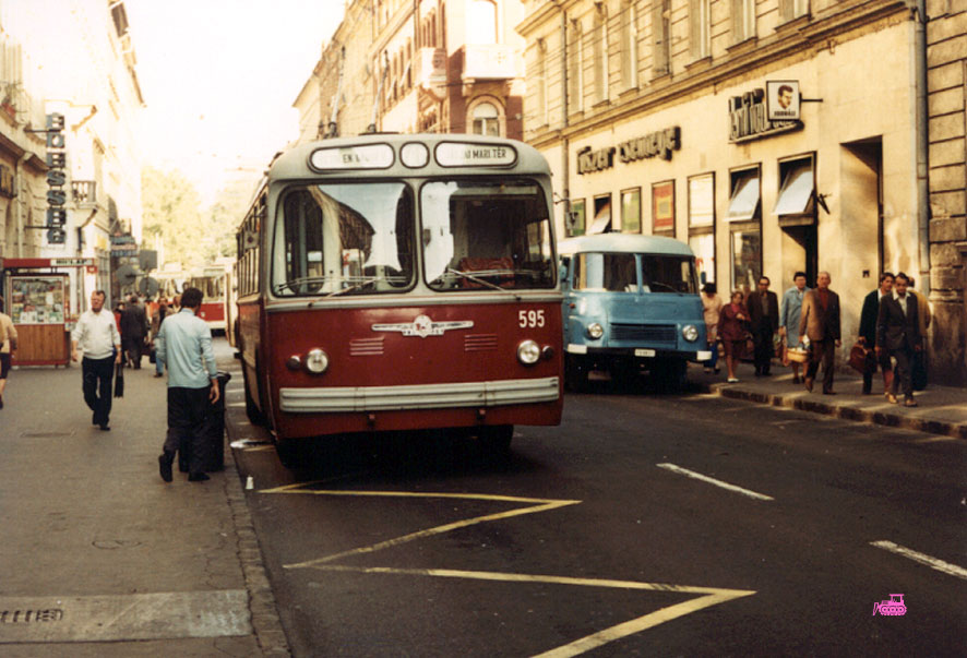 В Будапеште было около 100 ЗИУ-5, все в типичной для троллейбусов в Венгрии красной окраске. Фото: Мартин Харак, август 1976. |