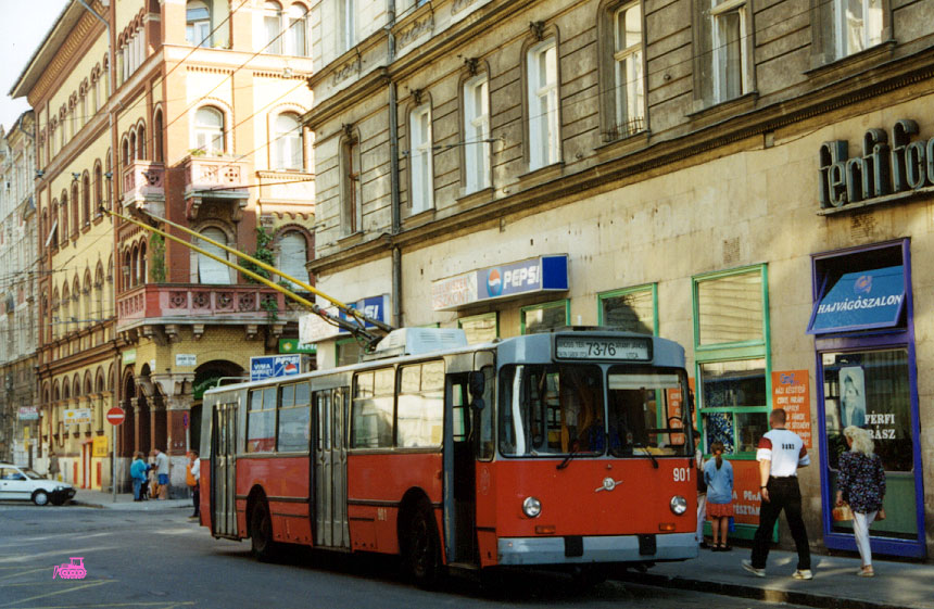 Будапешт получил в 1975-84 годах 172 ЗИУ-9 (номера 801-972). На фото Мартина Черни – троллейбус 901 на маршруте 73+76, 25.8.1999. |