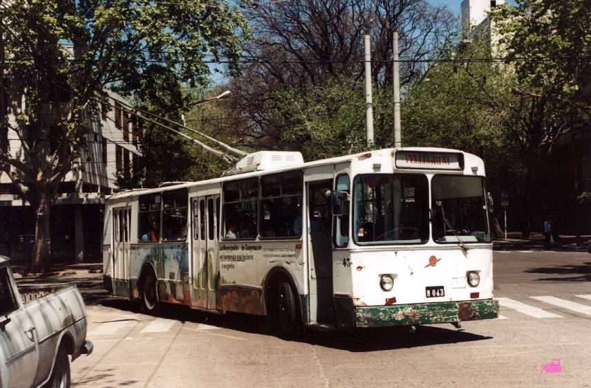 ЗИУ-9 в аргентинском городе Мендоза появились в 1984 году в дополнение к старым трооллейбусам б/у из Золингена. Всего их там 17, номера 30-46. Фото: Штефан Шпенглер, 9.10.1995. |