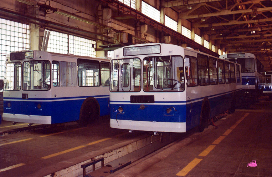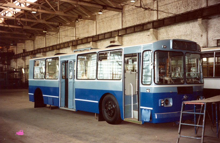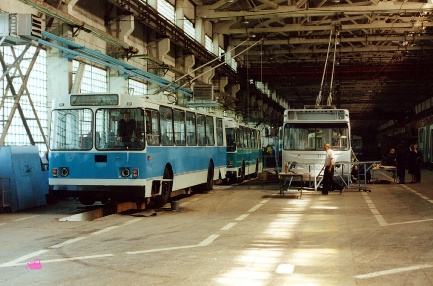 Новый ЗИУ-6205 в производстве. Куда был поставлен этот троллейбус в необычной окраске, хотелось бы узнать! Фото: АО, 3.9.1997. |
