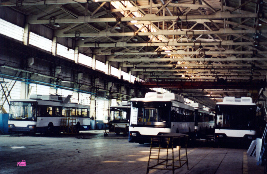 На базе Тролзы 5275 была создана модель 527500. Летом 2002 г. все 48 троллейбусов этой модели для Москвы были в производстве. Фото: Костя Климов, 18.8.2002. |