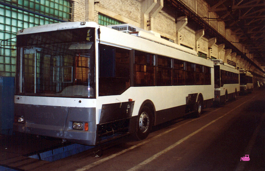 Новые тиристорные Тролзы 62052-02 существуют в виде одной партии для Минска (5 штук, номера 1005-1009, окраска белая/ тёмно-синяя: http://photo.tramvaj.ru/images/minsktb/1006.jpg) - и единственного (?) бело-красного экземпляра, отправленного в Стерлитамак. Этот троллейбус для Стерлитамака фотографировал Костя Климов на заводе в 2002 году. |