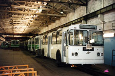 Производство на Тролзе в сентябре 1997 г. В основном тогда троллейбусы красили в зеленый цвет. Отличается ли этот белый троллейбус от основной массы ЗИУ-682ГОА (или 012 – модели в документации и на заводских табличках обозначаются по-разному), неизвестно. Фото АО, 3.9.1997. |