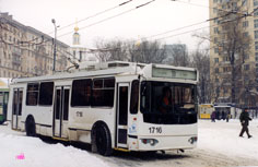 Последняя на сегодня модификация ЗИУ-682 называется 016-02. 20 таких есть в Москве, встречаются они и в Краснодаре, Томске и возможно еще где-нибудь. Фото Кости Климова: 1716 в Москве на выезде с круга конечной «ст.м.Сокол», 30.12.2002. |