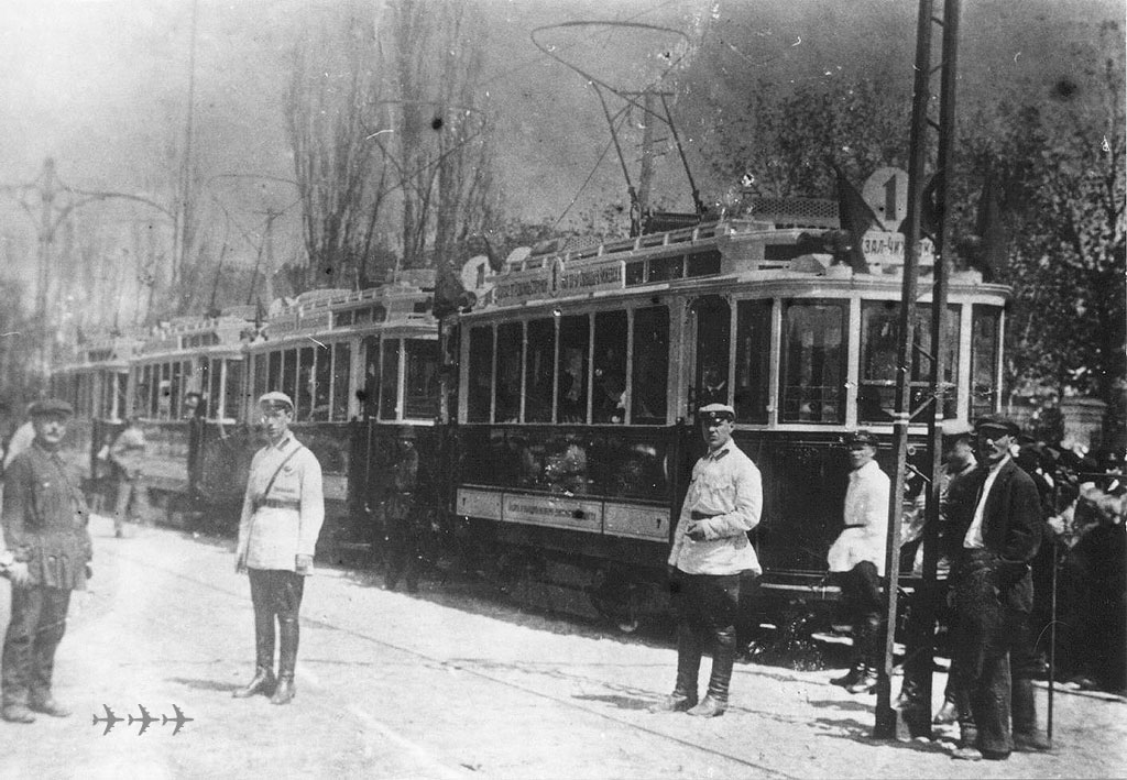 Открытие трамвая состоялось 16 мая 1926 г. 10 вагонами Коломенского завода. Маршрут №1 – «Вокзал – Чижовка». Прицепные вагоны появились через год, это были 5 вагонов Рижского завода «Феникс» б/у из Ленинграда (Стрельнинской линии?). Фото: вагоны №7 и другие на открытии; музей Воронежского ТТУ. |
